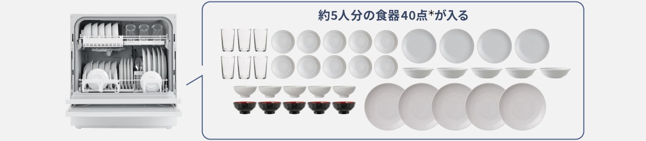 でもパナソニックのレギュラータイプなら、約5人分の食器が一度に入る大容量。