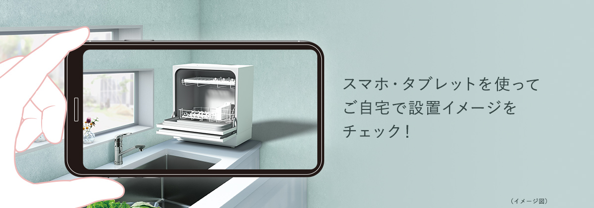 パナソニック公式サイトでは、スマホを使って食洗機を実物大で表示できる「設置シミュレーション」が利用できます。