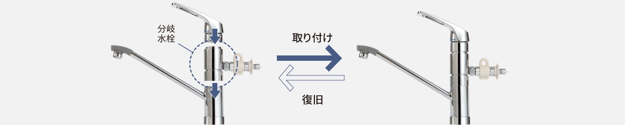 分岐水栓をつなぐだけなので、大がかりな工事の必要がなく、原状回復もできて安心です。