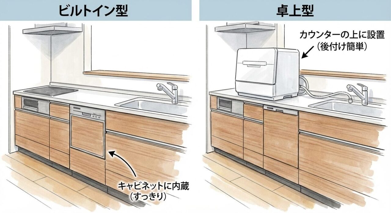 食洗機には大きく分けて「ビルトイン型」と「卓上型」があります。